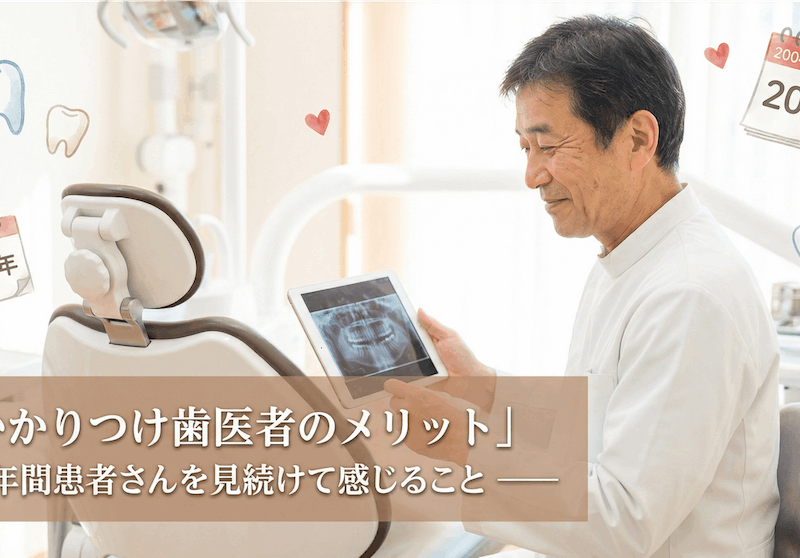 私のクリニックでも、定期検診のたびに「あの銀歯ちょっとゆるくなってきてますね」とお伝えできることがあります。問題が小さいうちに対処できれば、患者さんの負担も最小限に済む——これが定期検診の一番の価値だと、20年間患者さんと向き合ってきて、改めて感じています。